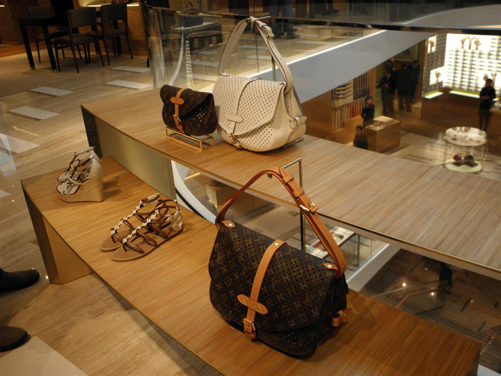Peter Marino, the new york-based architect responsible for Louis Vuitton store interiors across the planet, redesigned the buiding’s interior, retaining the visual drama by its impressive staircase winding around a wide open atrium that allows in floods of daylight.